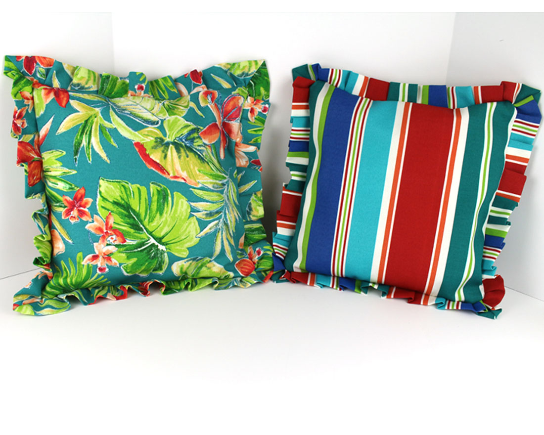 - Outdoor canvas material was used to make this cover for a 14″ pillow.